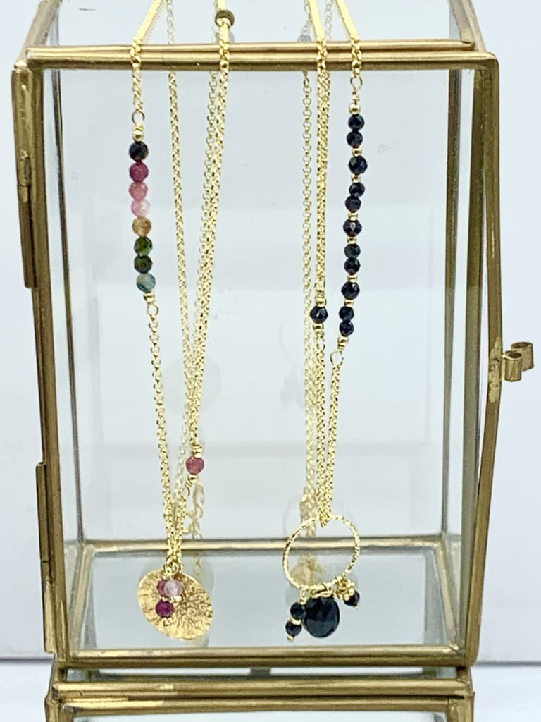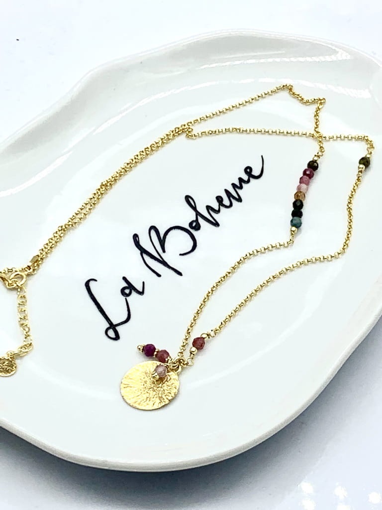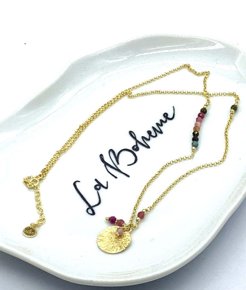 Naszyjnik łańcuszek z kamieniami zawieszka blaszka turmalin 50 cm złocony