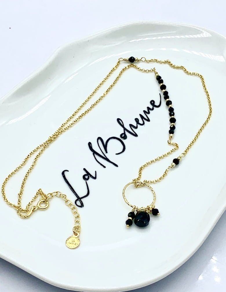 Naszyjnik łańcuszek z kamieniami zawieszka kółko czarny turmalin spinel 50 cm złocony