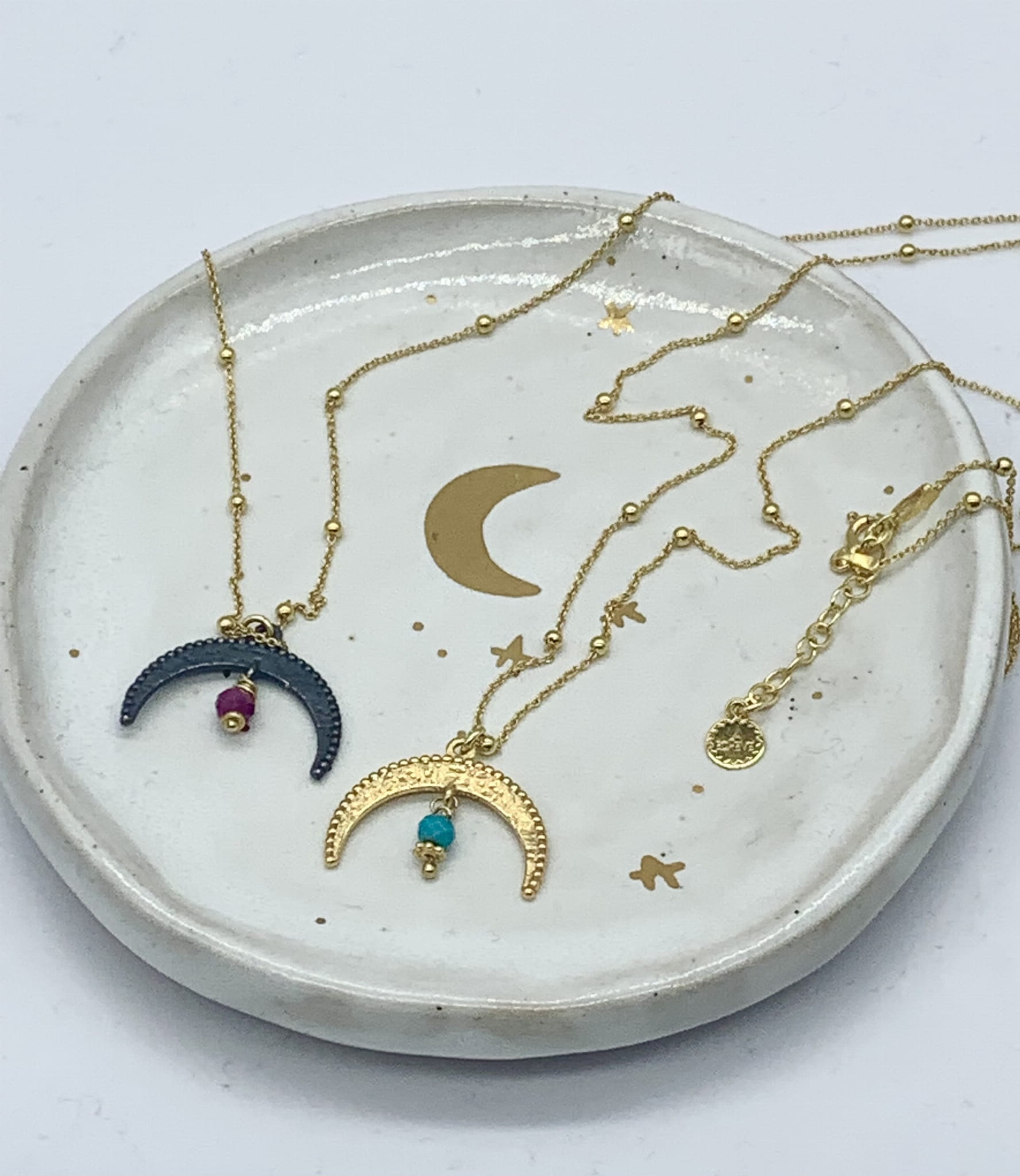 Naszyjnik łańcuszek z kuleczkami Lunula Luna Księżyc turkus oksydowana 40cm złocony