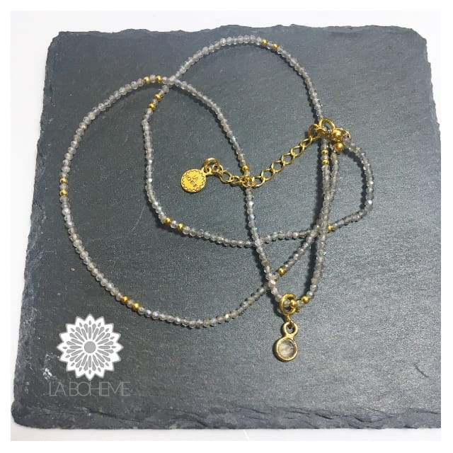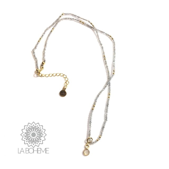 Naszyjnik z naturalnych kamieni ze srebrnym zapięciem z wykończony logo La Boheme.