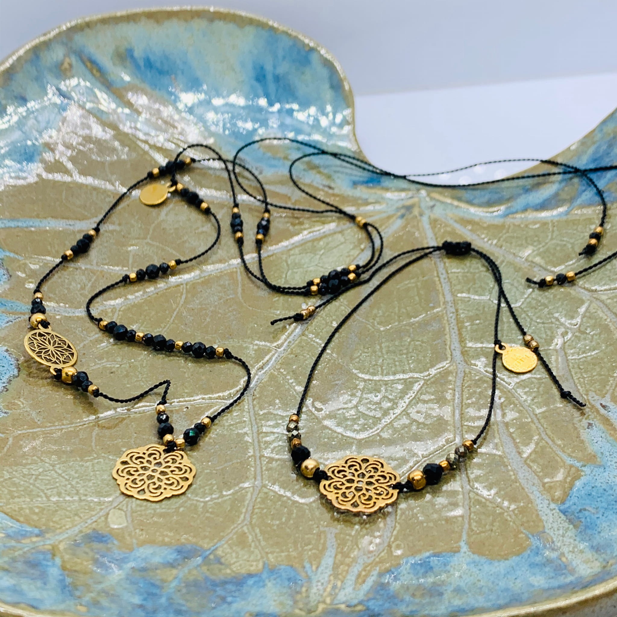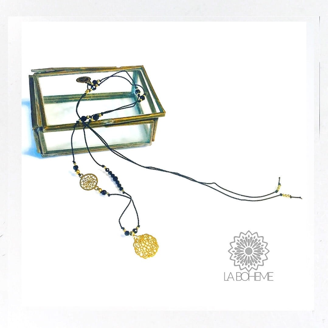 Naszyjnik Naturalność czarny z rozetami zloty II